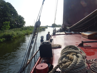 Die "De Albertha" ist einer der wenigen Plattbodensegler, die sowohl im holländischen und deutschen Watt und auf den Binnengewässern als auch auf der Ostsee fahren darf.
